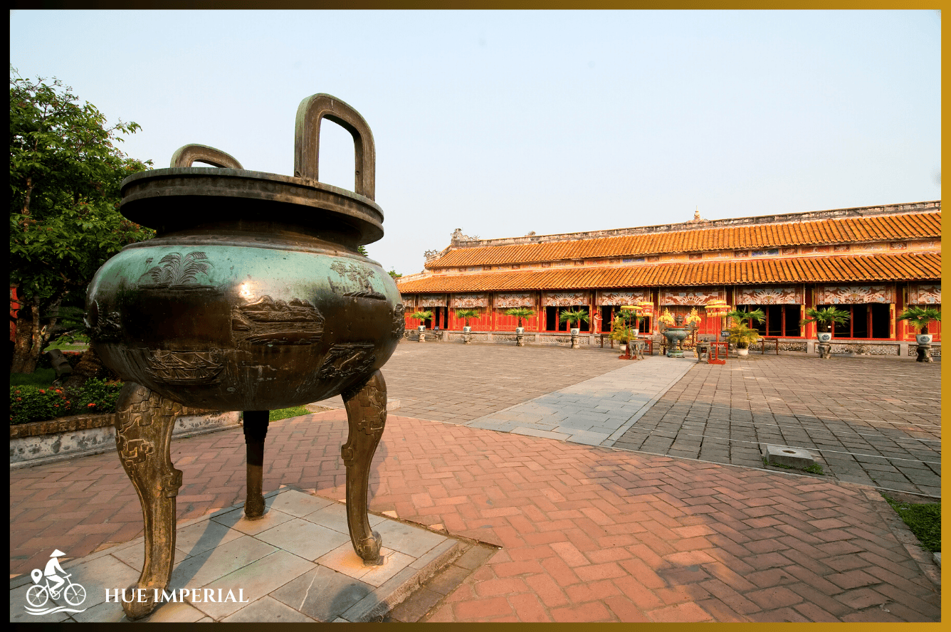 • Visit the striking Flag Tower, the imposing Ngo Mon Gate, Dien Tho Residence (Dien Tho Palace), Thai Hoa Palace, the magnificently decorated reception hall, the Halls of the Mandarins, and the original Nine Dynastic Urns…