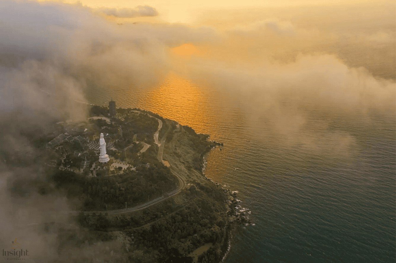On the way to the town, we will visit Son Tra Peninsula. Located atop a hill by the coast of Son Tra Peninsula, this is the largest Buddhist temple in Da Nang. Overlooking the city beachfront, its grandeur Buddha shrines are surrounded by bonsai gardens dotted with sculptures. For locals, it’s sacred equally to two older Linh Ung pagoda. There are many monkeys from the nature reserve nearby coming here for food handed out from tourists. Rising up to 67 meters from the ground, the Lady Buddha Da Nang is the tallest of its kind in Vietnam. She faces the city to shelter the citizens from disasters and patronizes fishermans. Sculpted by hands of the Non Nuoc marble village’s artisans, it houses a Buddha shrine on each floor inside.